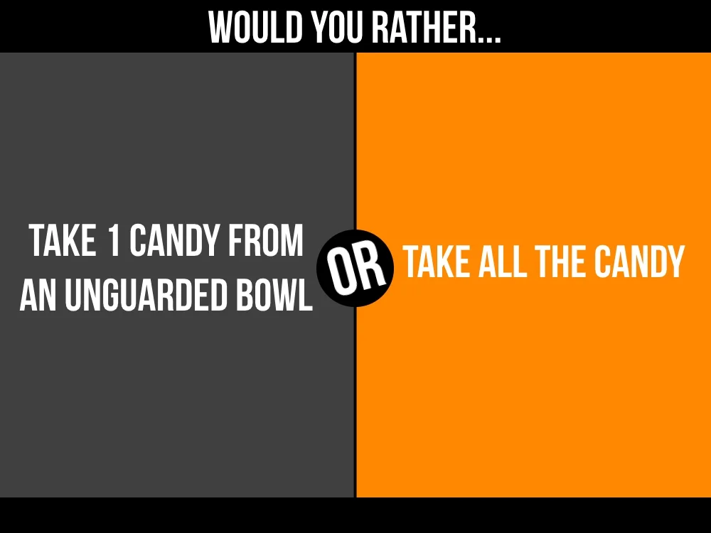 Have students stand in the middle of the room. If they'd rather do the first thing you say, have them move to the left side of the room. If they'd rather do the second thing you'd say, have them move to the right side of the room.